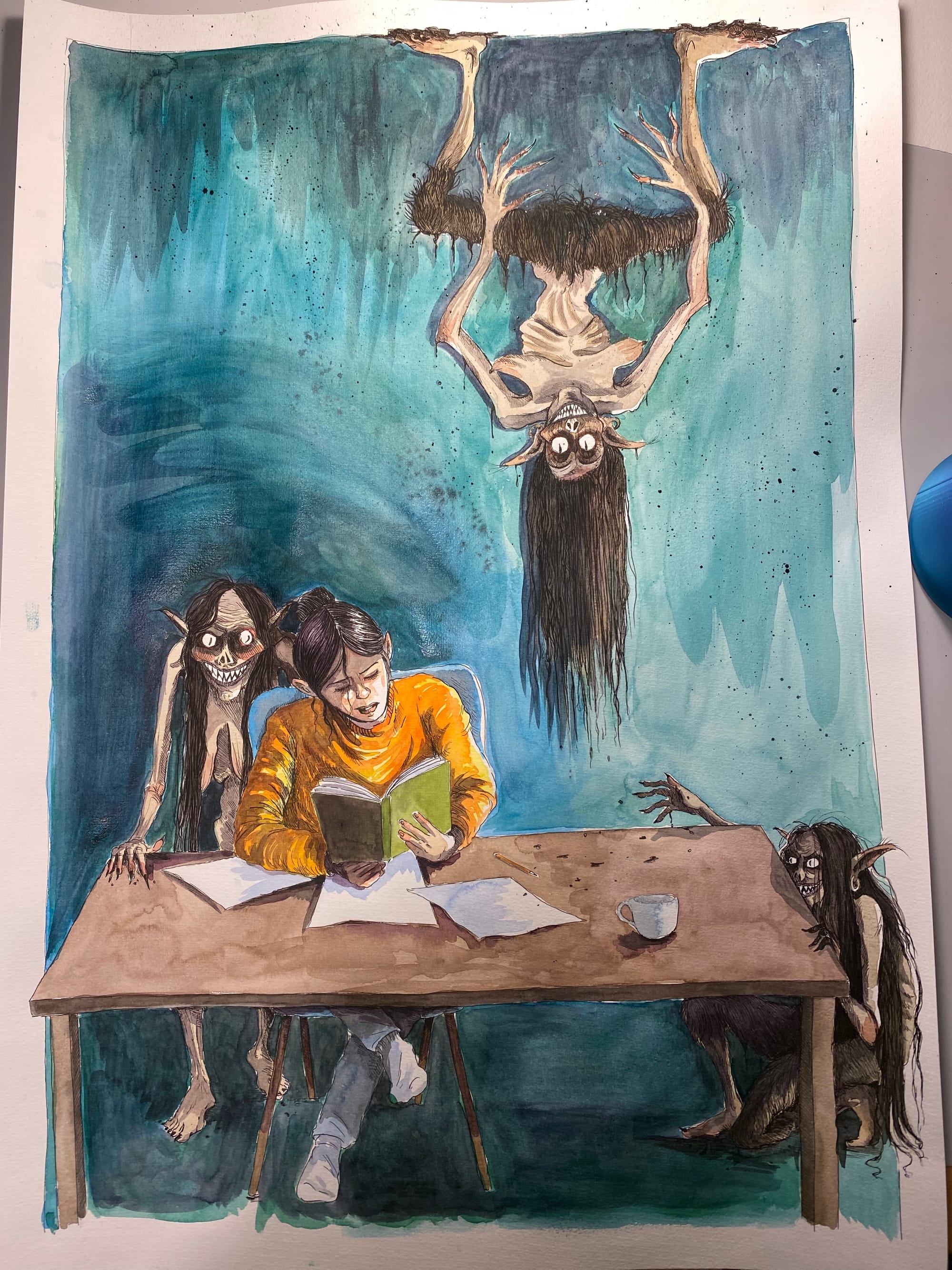 Jeg er billedkunstner og illustrator med base i det lokale kunstmiljø. Jeg arbejder primært med blæk, akvarel, gouache og akryl, og supplerer mit arbejde med digital illustration. I mine værker undersøger jeg, hvordan fortællinger opstår i mødet mellem natur, myter og folkeeventyr – fra det mørke og tragiske til det poetiske og romantiske.
