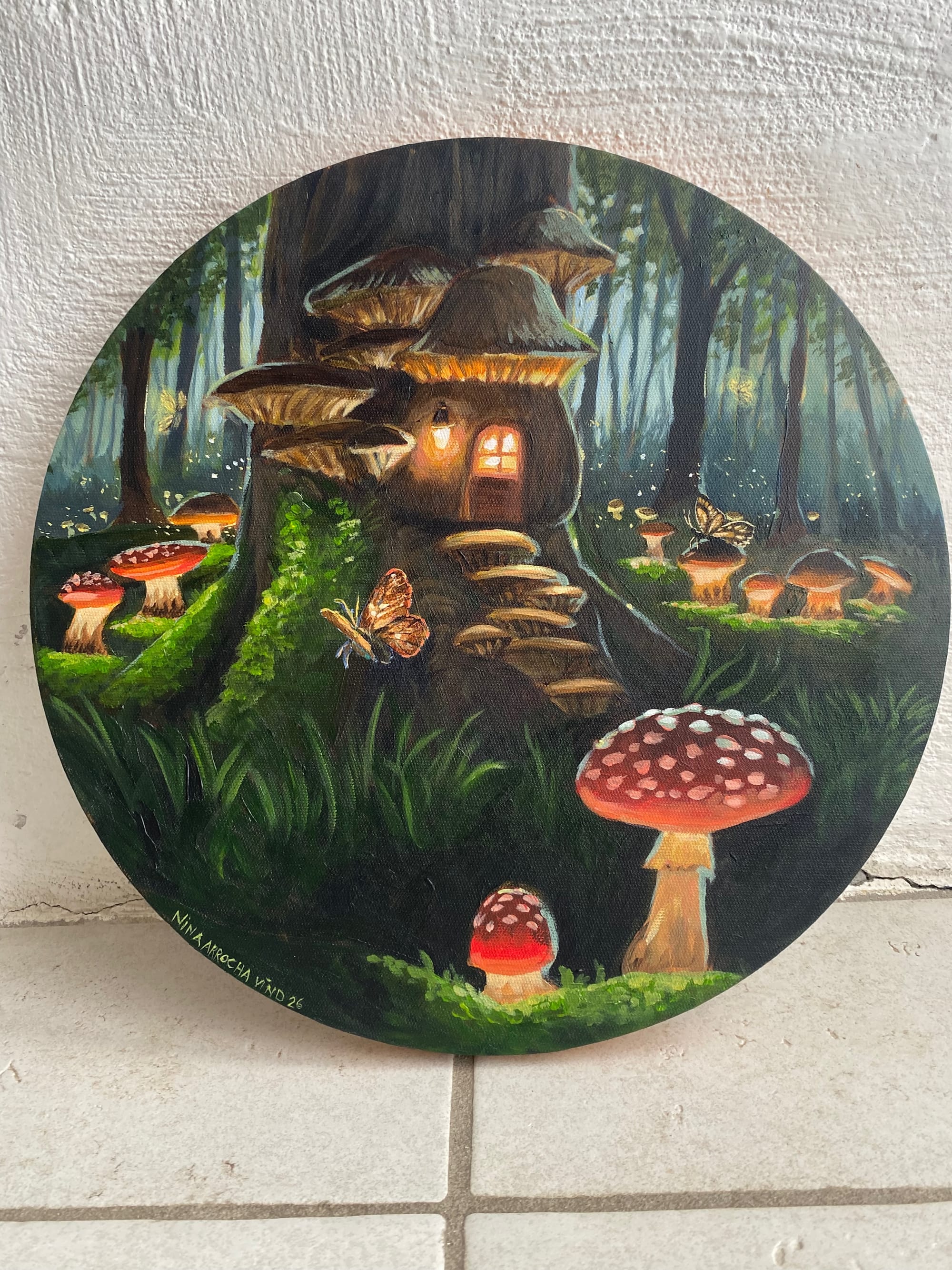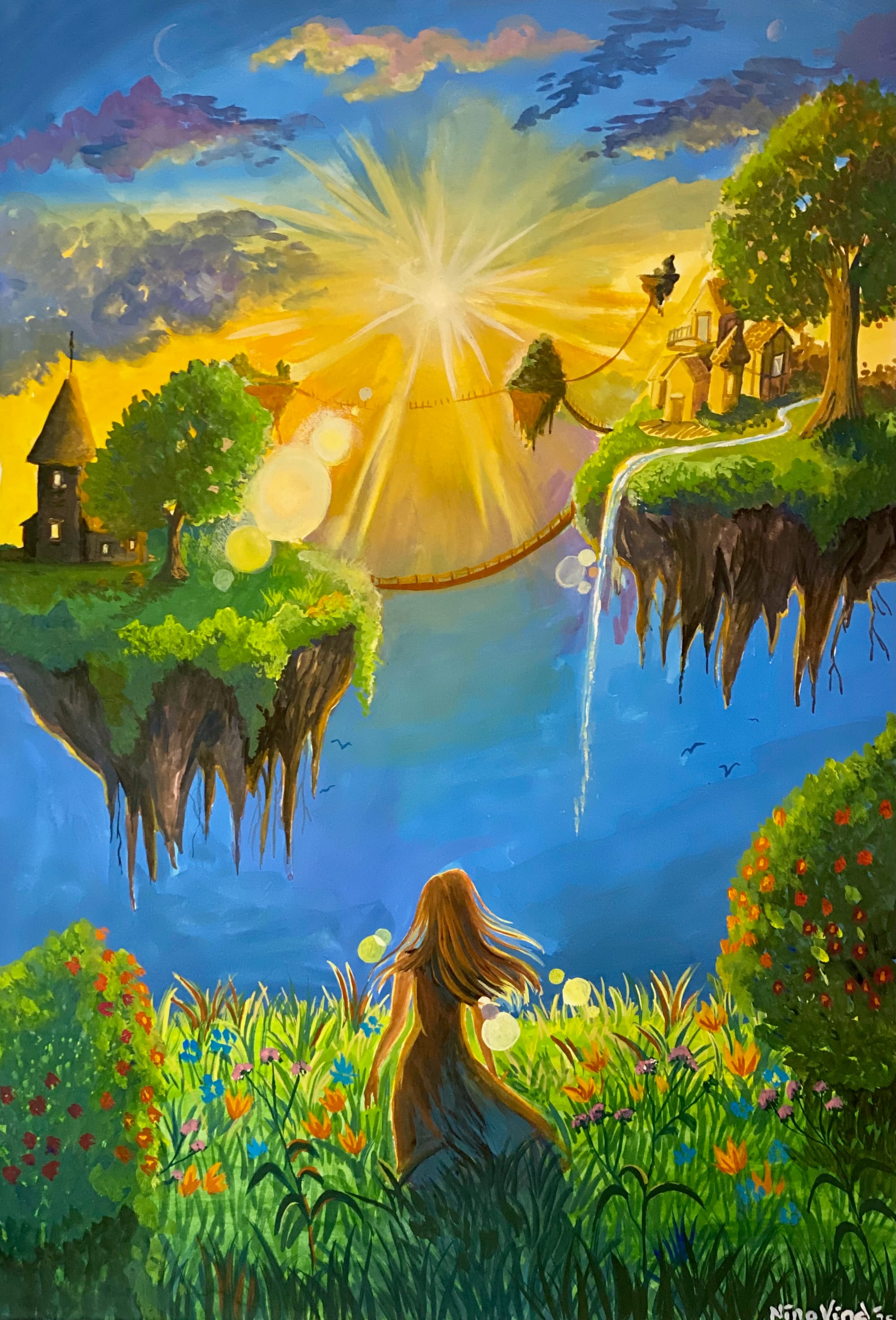 Mine billeder er ofte farvemættede og har et tydeligt illustrativt udtryk. Jeg ønsker at skabe åbne fortællinger, hvor beskuerens egen fantasi og fortolkning er med til at forme værkets endelige betydning.